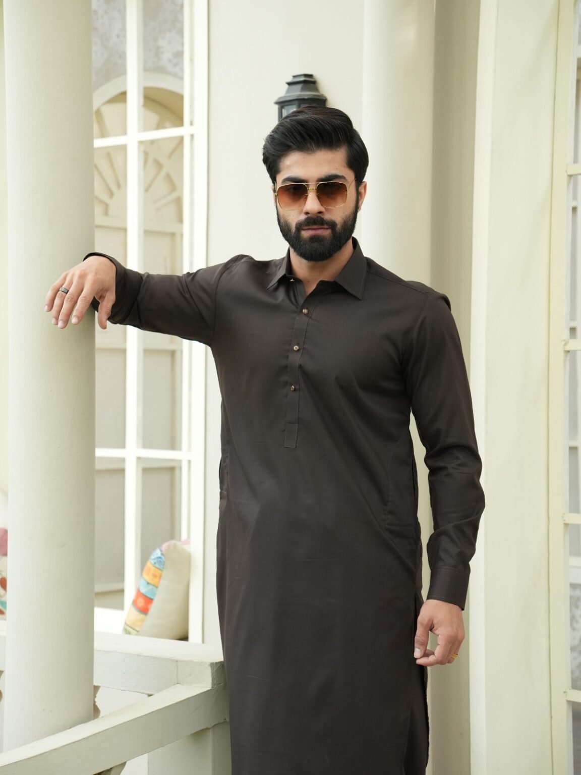 Elevate your traditional wardrobe with our timeless Espresso Brown kameez shalwar from Elam Wear EW 101. Designed for the modern man who values sophistication and simplicity. This piece blends classic Eastern style with a refined contemporary finish.